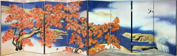 漆絵 横山大観の名作_紅葉 左隻+右隻 屏風仕立て